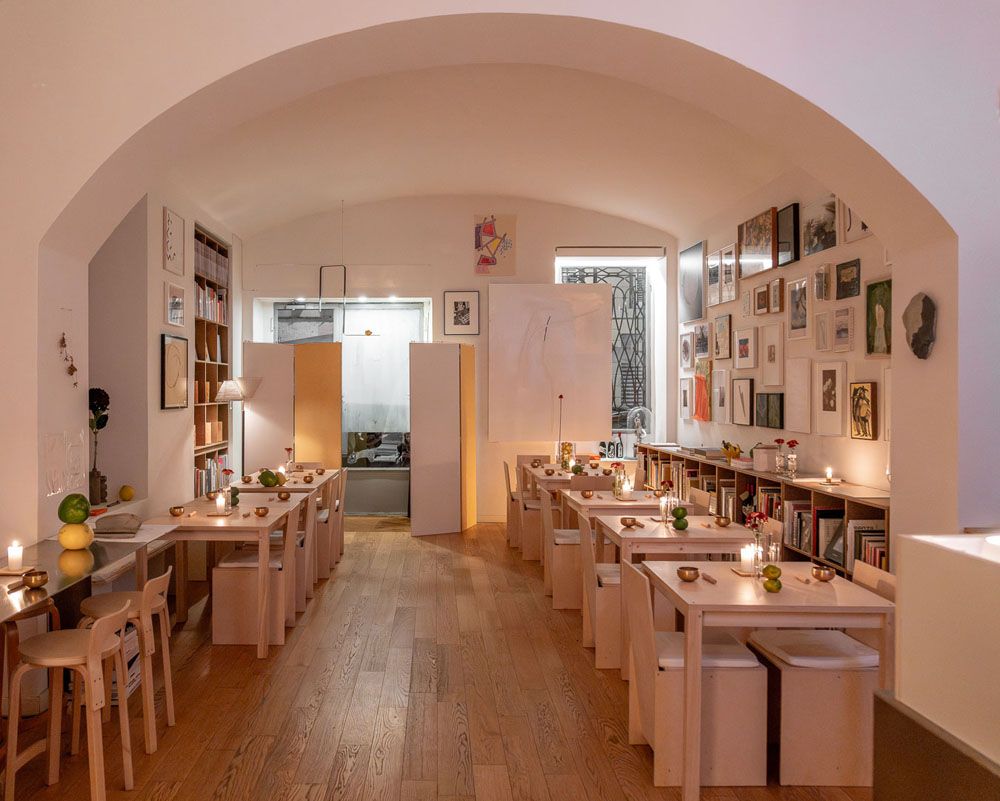 A unique gastronomic experience where you can taste artist recipes created in collaboration with Chef Marco Sforza, surrounded by artworks and shelves of books immersed in an inspiring setting. Every object and design, from tableware to napkins, from chairs to menus is conceived by Italian and international artists. This project reveals how food becomes a metaphor for social interaction and engagement of different disciplines placing human relationships at the centre.