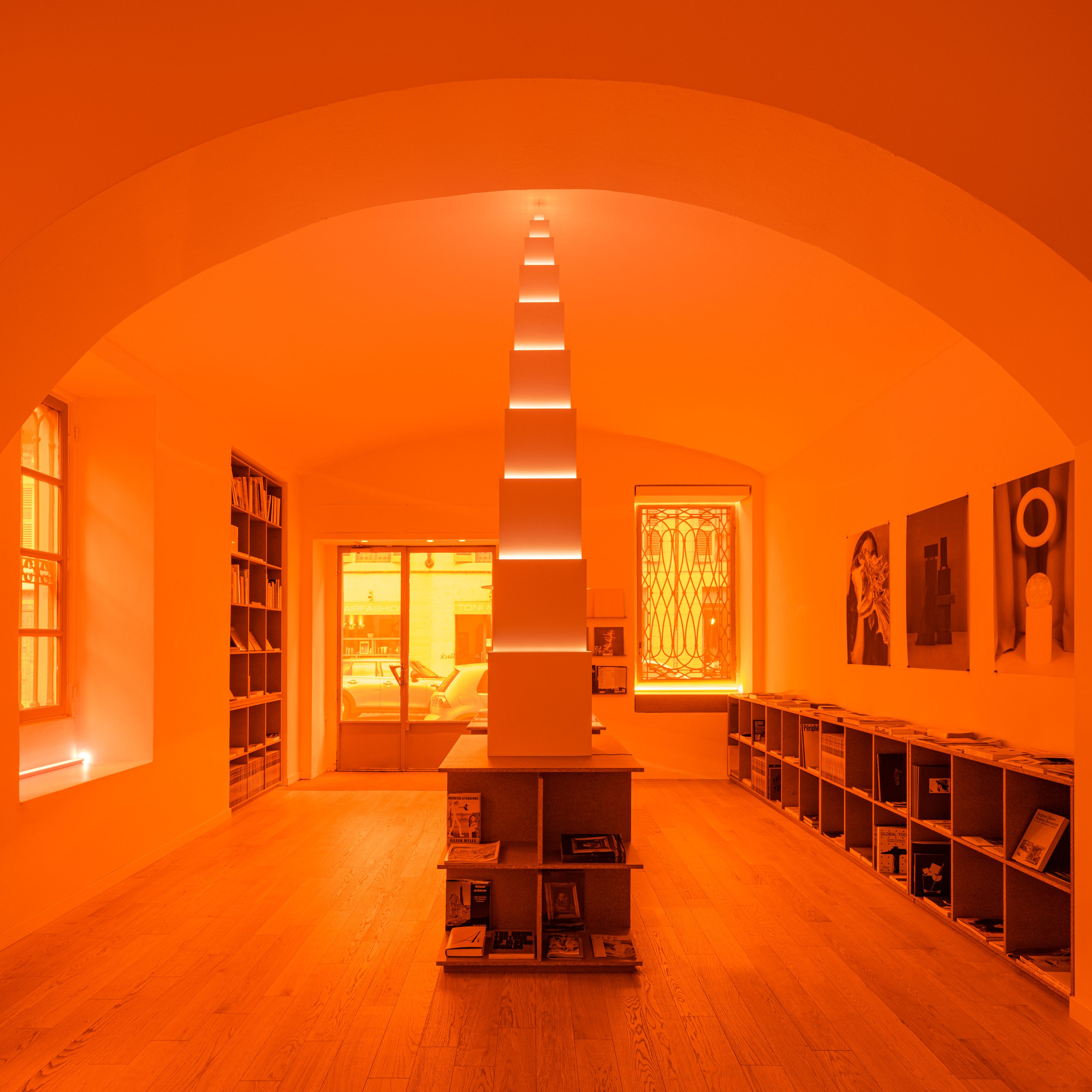 In search of the unconscious of sensation and matter, the installation revolves around the metaphysical aspects of light and object. A monumental, philosophically determined object, that attempts to describe „the great house of humanity“ (Ilya & Emilia Kabakov), dominates the room. One can read the tower as a fiction and as an admonition, one can understand it as an object that means what is admonished, but not always take the admonition seriously.