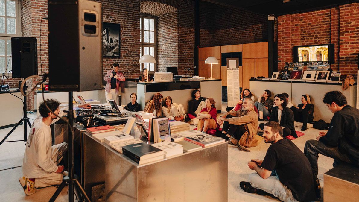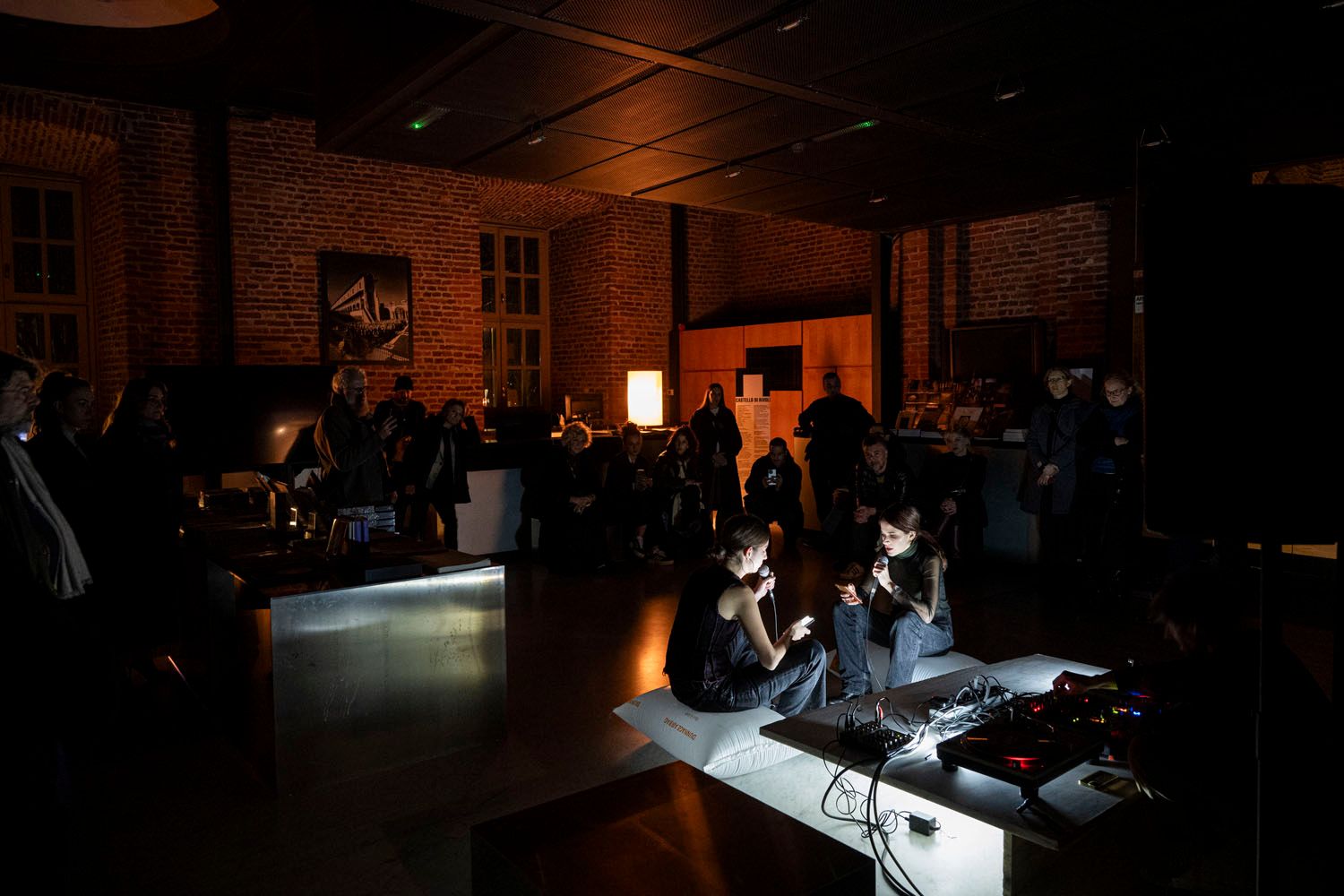 After the performance POETRY ON SOUND, with the intention of leaving a trace, a space for contemplation and listening has been recreated: on the floor are the texts chosen and written by Maria Luce Cacciaguerra and Greta Sugar.