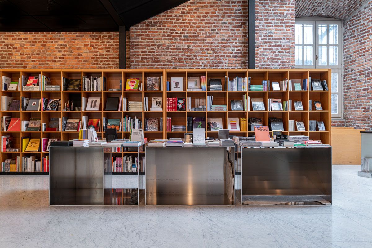 In the bookshop we've exhibited, changing every two months, a curated selection of artists’ books and printed matter from the Library of Castello di Rivoli to highlight its extraordinary collection, that includes more that 47,000 titles.