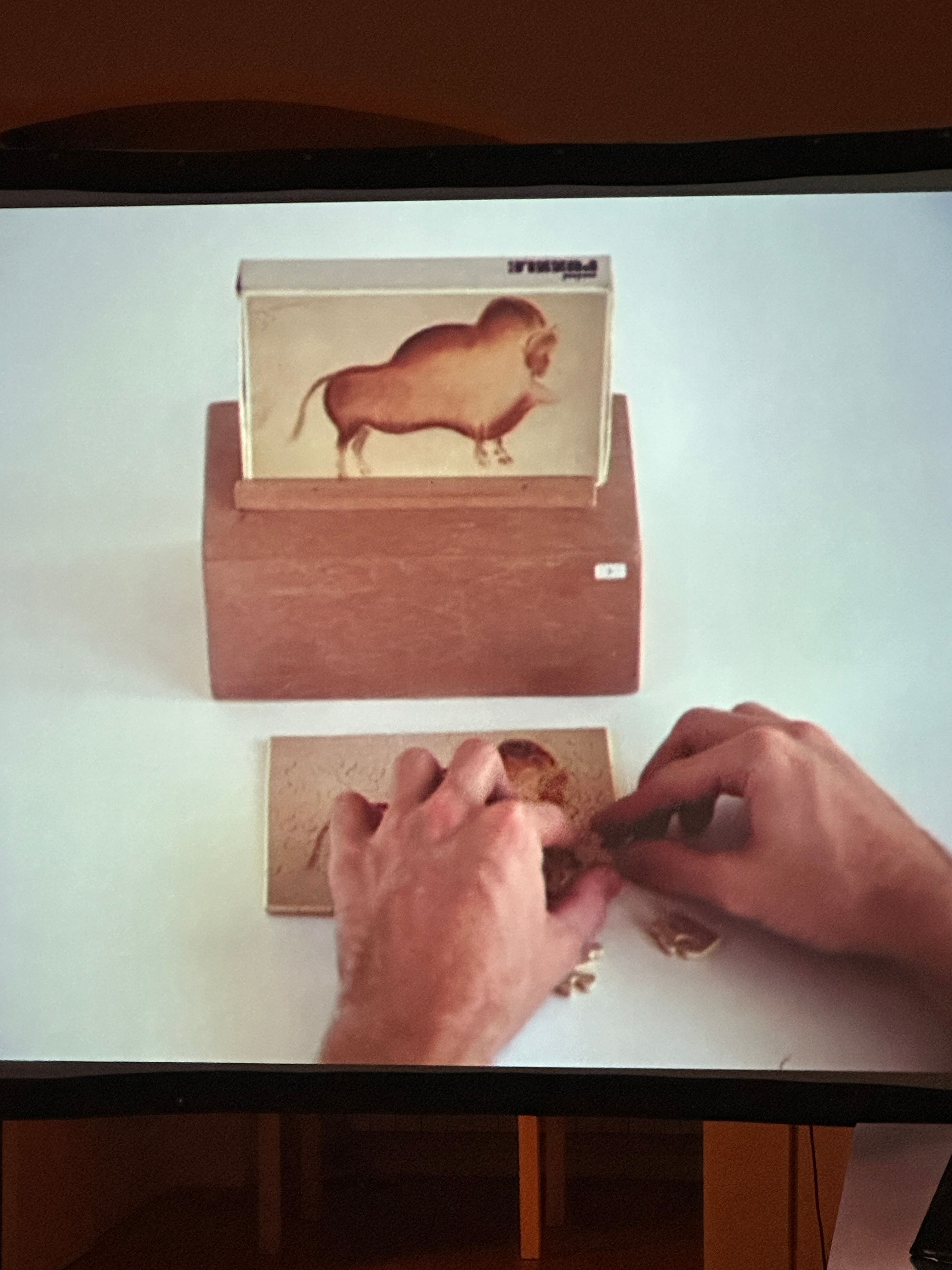 I decided to do more than just record the exhibition and called on artist and curator Fernando Cocchiarale to write the text for the film’s narration, which would be like a pastiche made from countless compendiums and clichés found in art history books. Narrated in a voice-over in the style of traditional film and television documentaries from the 1970s, the text retells the history of art, from cave art to pop art, using the images taken during Essila’s show as a guiding thread.’